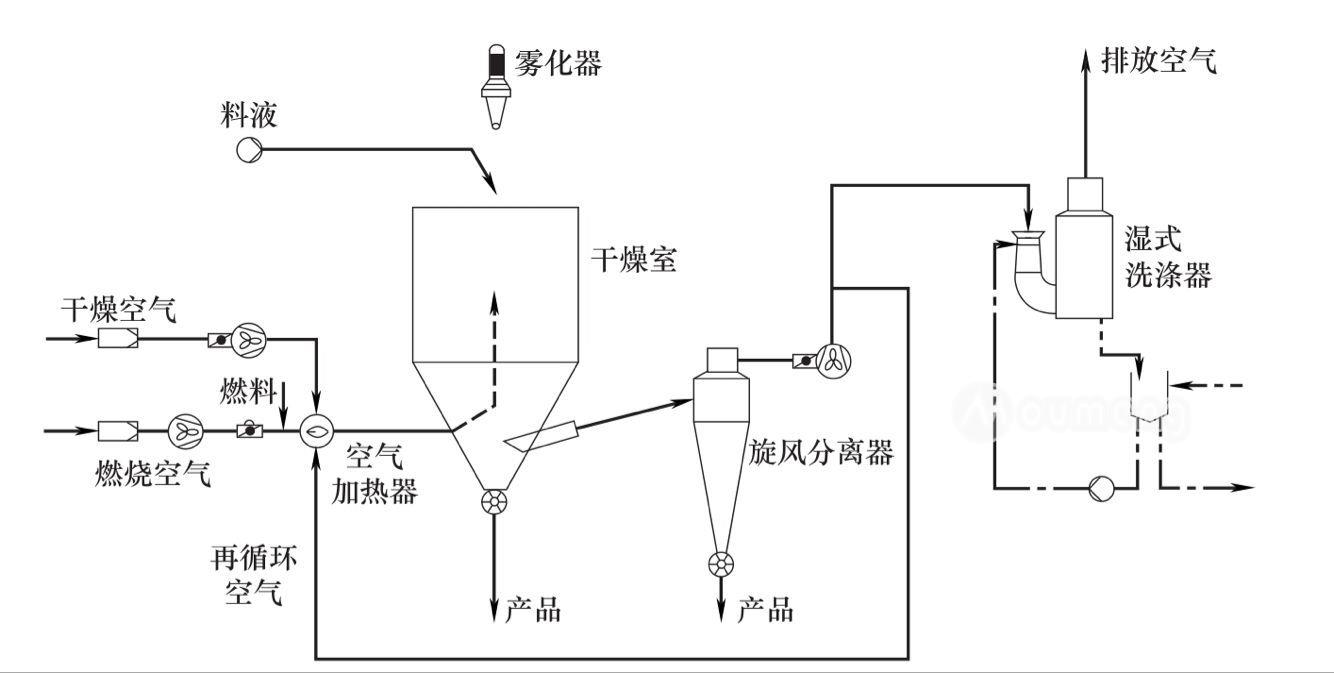 開式的具有部分廢氣再循環(huán)的噴霧干燥流程