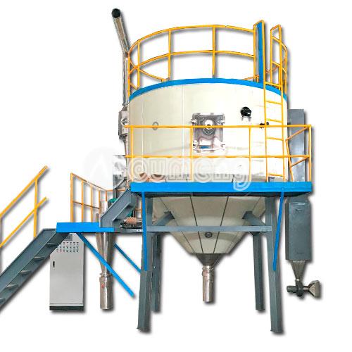 產品特點干燥速度快,料液經霧化后表面積大大增加,在熱風氣流中,瞬間就可蒸發95-98%的水份,完成干燥時間僅需數秒鐘,適用于熱敏性物料的干燥。