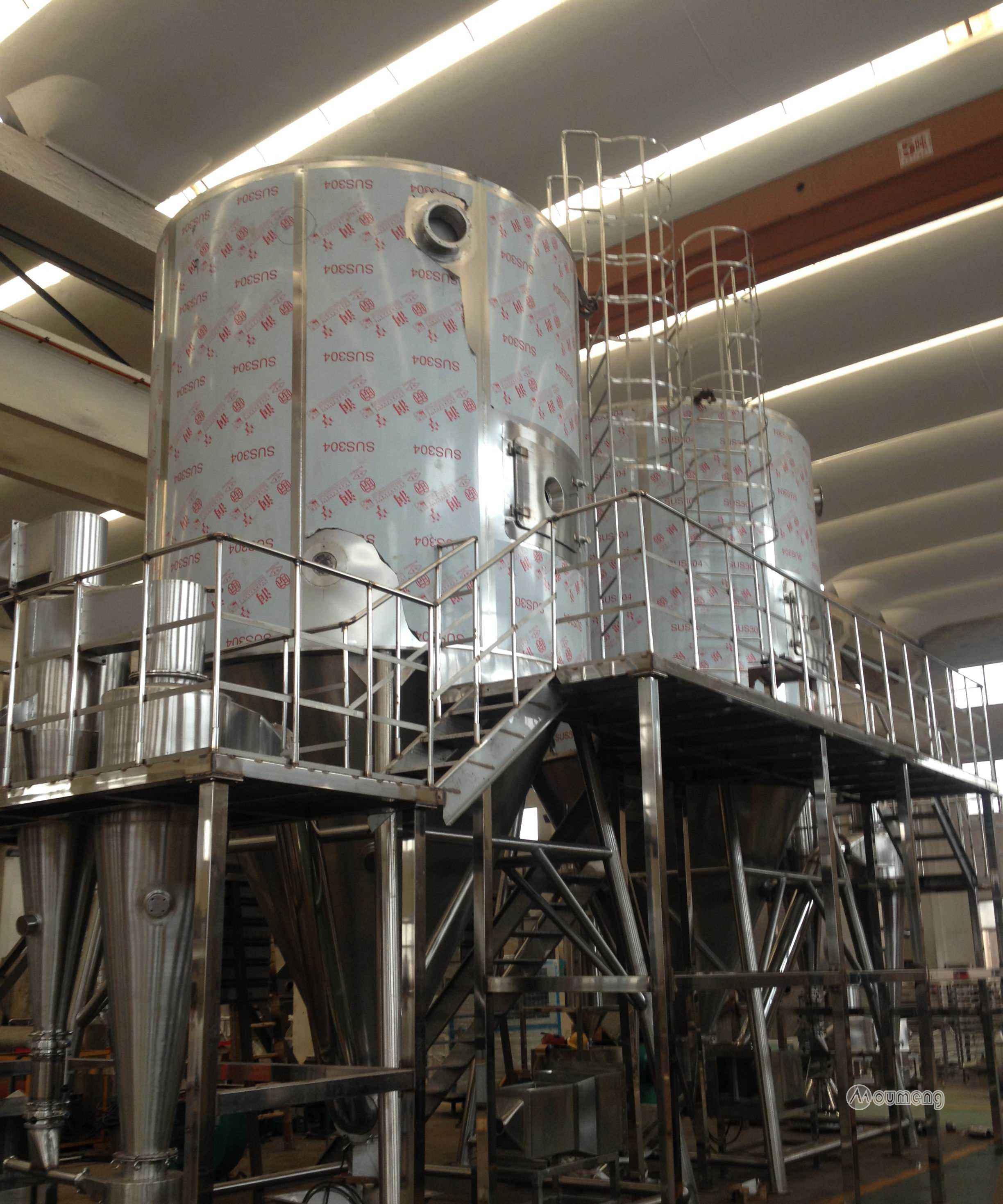 產品概述離心噴霧干燥機液體工藝成形和干燥工業中應用的工藝。適用于從溶液、乳液、懸浮液和糊狀液體原料中生成粉狀、顆粒狀固體產品。因此,當成品的顆粒大小分布、殘留水份含量、堆積密度和顆粒形狀必須符合精確的標準時,噴霧干燥是較好的工藝。